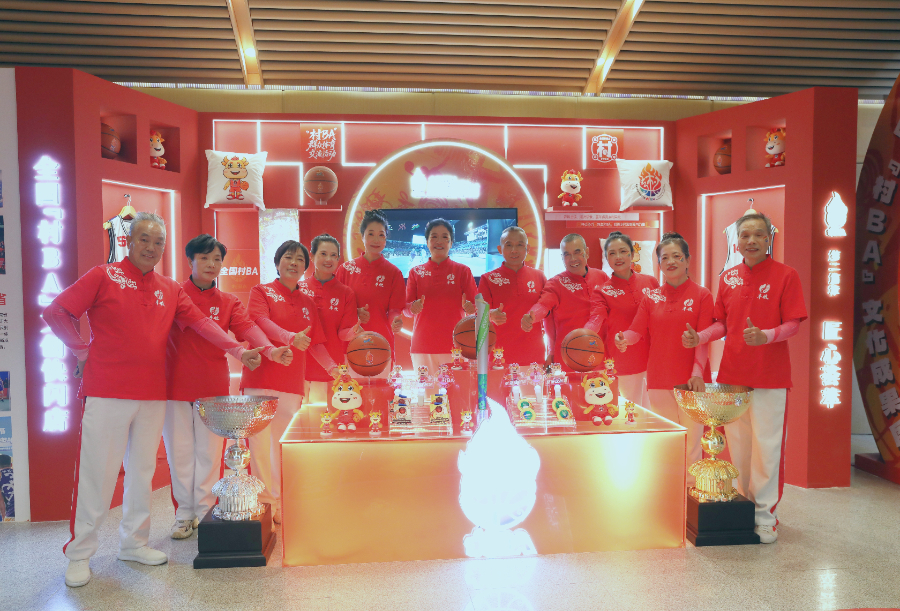 参加活动的表演者们在“村BA”文创区合影留念。张殊凡 摄