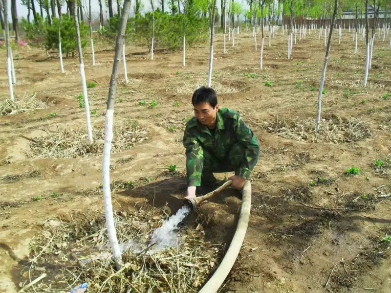 李建亮在平原地区造林浇水。受访者供图