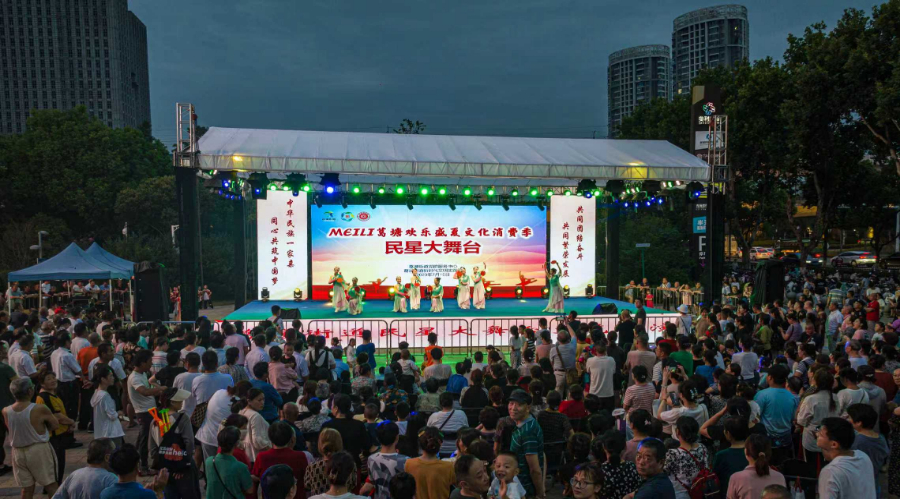 “民星大舞台”,葛塘居民的夏夜“村晚”。江北新区葛塘街道供图