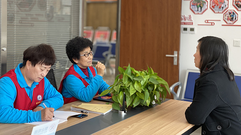 唐革军(左二)正在做调解,向当事人了解情况。(来源:辽宁法制报)