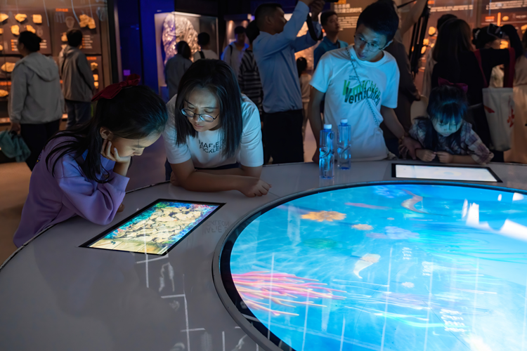 9月24日,游客沉浸式体验国家海洋博物馆的科普展示。新华网 钟奕 摄