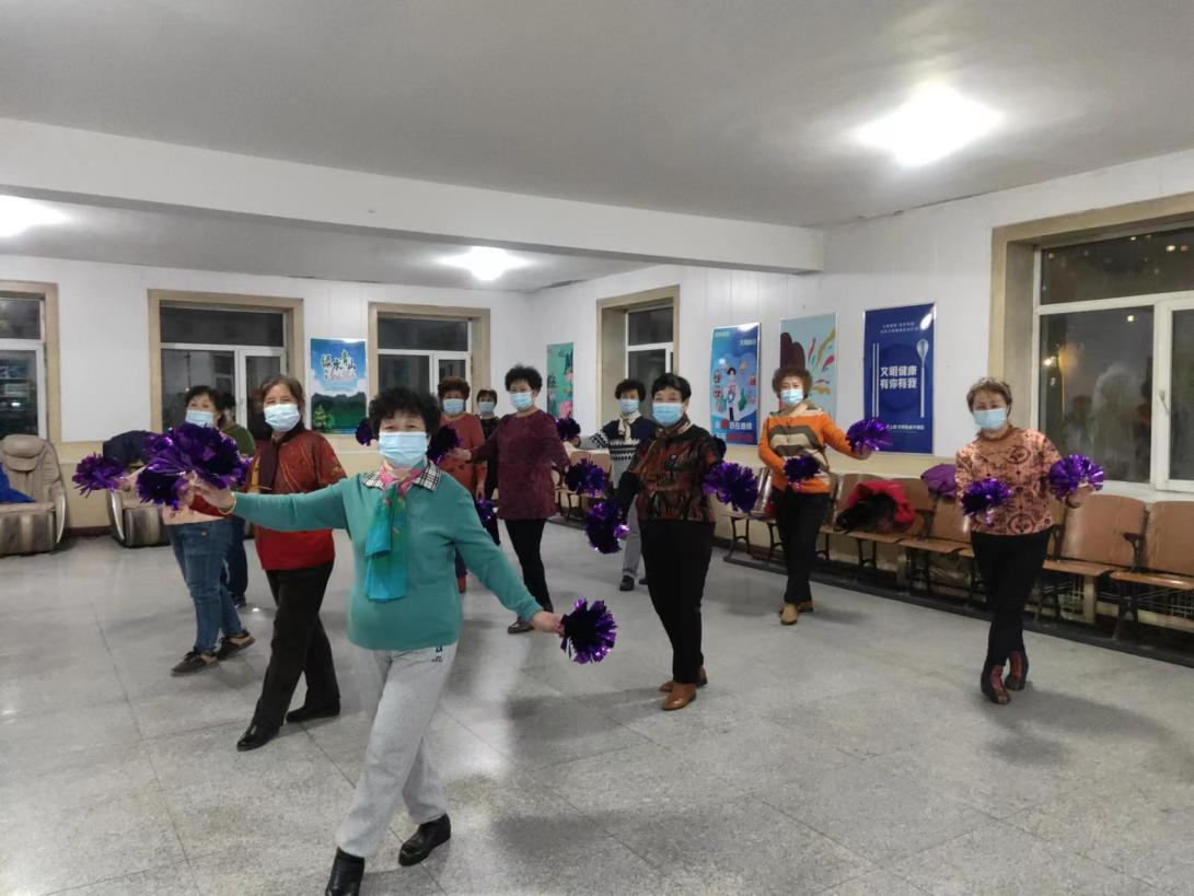 村民们在红光村新时代文明实践站多功能活动室跳舞。周政娟 摄
