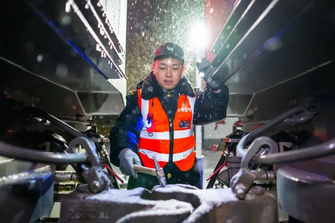 包头西机务段细致检查、试验机车各部状态,强化运行途中添乘指导,确保雪天铁路运输安全。