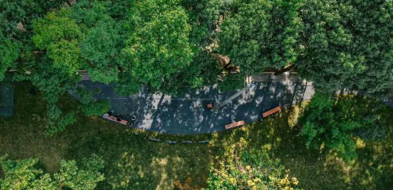 俯瞰沐光林境口袋公园一隅。