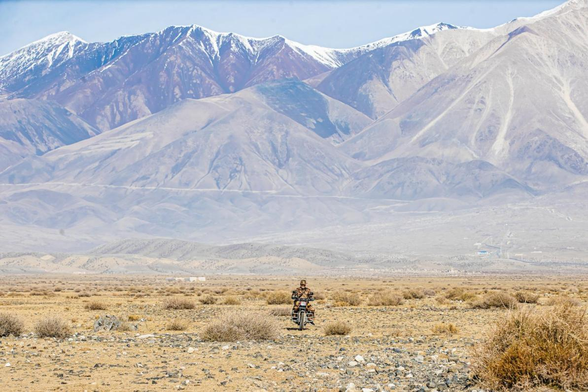 欧龙巴依尔骑摩托车巡边。楠登 摄