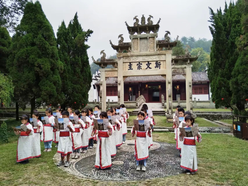 细雨绵绵的秋日,铅山县鹅湖书院迎来一群稚气未脱的小学生。在讲解员的带领下,孩子们穿过礼门、走过头门,在“斯文宗主”石牌坊前齐声诵读朱熹家训。一个戴眼镜的男孩轻声对同伴说:“原来书院的门槛不能随便踩,读书要有读书的样子。”